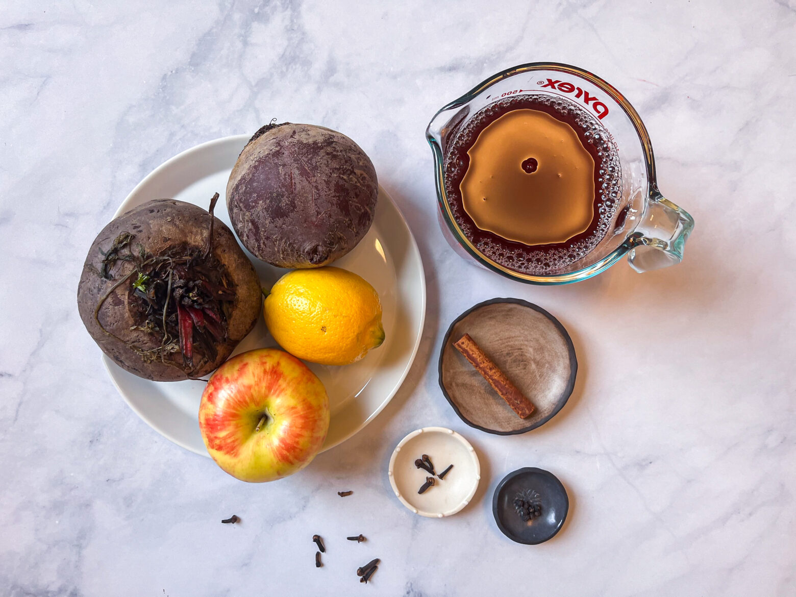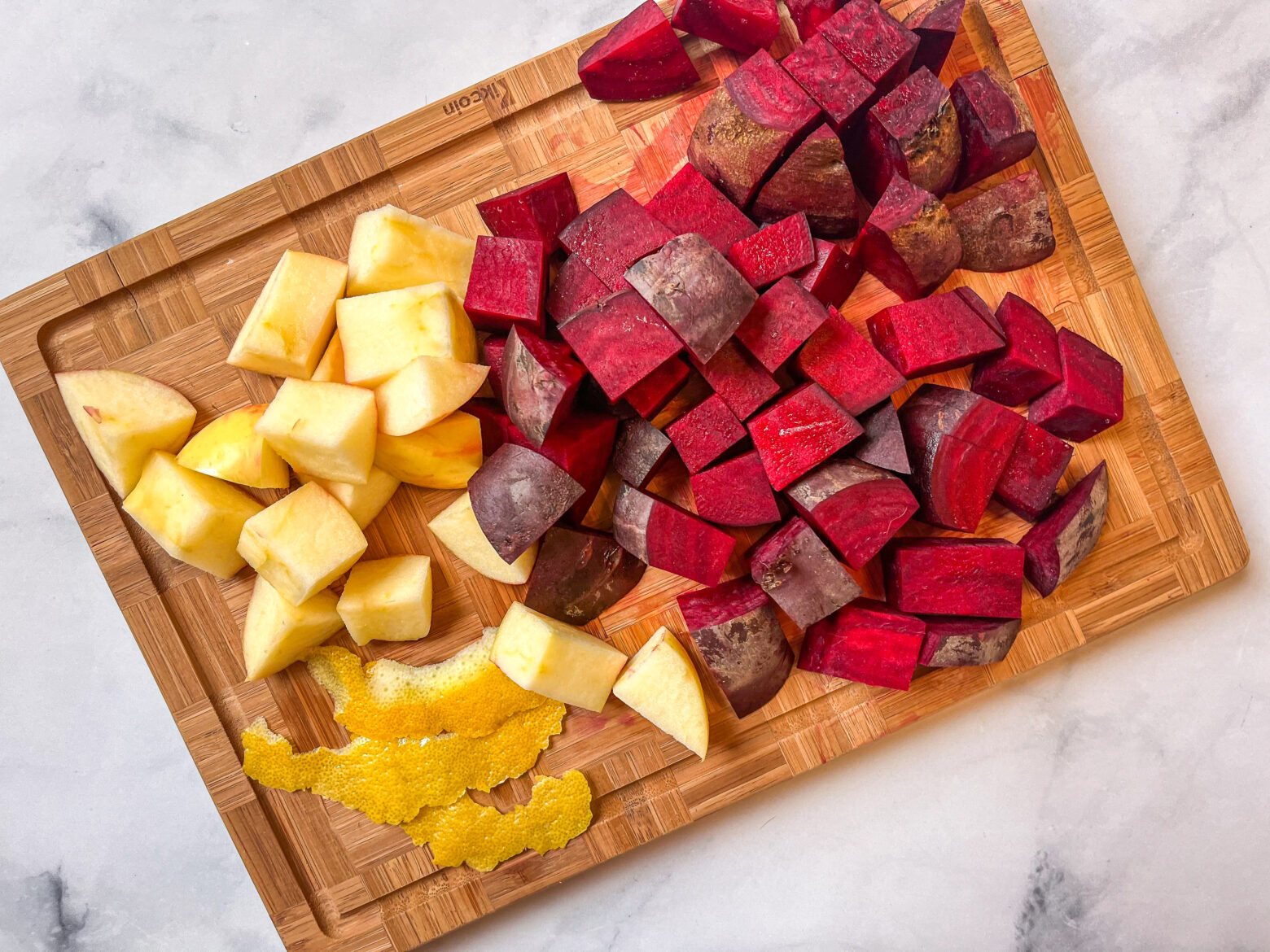Beets add anti-inflammatory benefits from the antioxidant betalain, which supports exercise stamina and may reduce the risk of heart disease. We used red beets for their beautiful rosy color. Apple balances the tartness—so choose one on the sweeter side, like Fuji, Honeycrisp, or golden. To round out this recipe, we used warm spices to soften the sharpness of the vinegar.