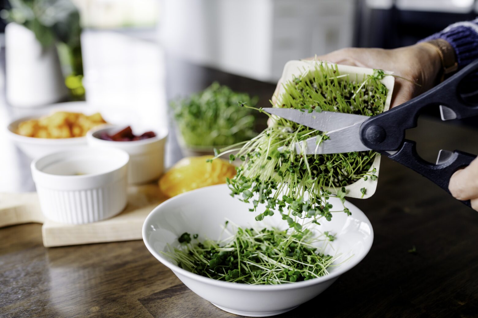 This salad is packed with nutrient-dense ingredients. The base, broccoli microgreens, are loaded with polyphenols, which help reduce inflammation in the body. [1] (We used two trays of Instafarm™ microgreens to make our salad, which amounts to about 2 cups of greens.)