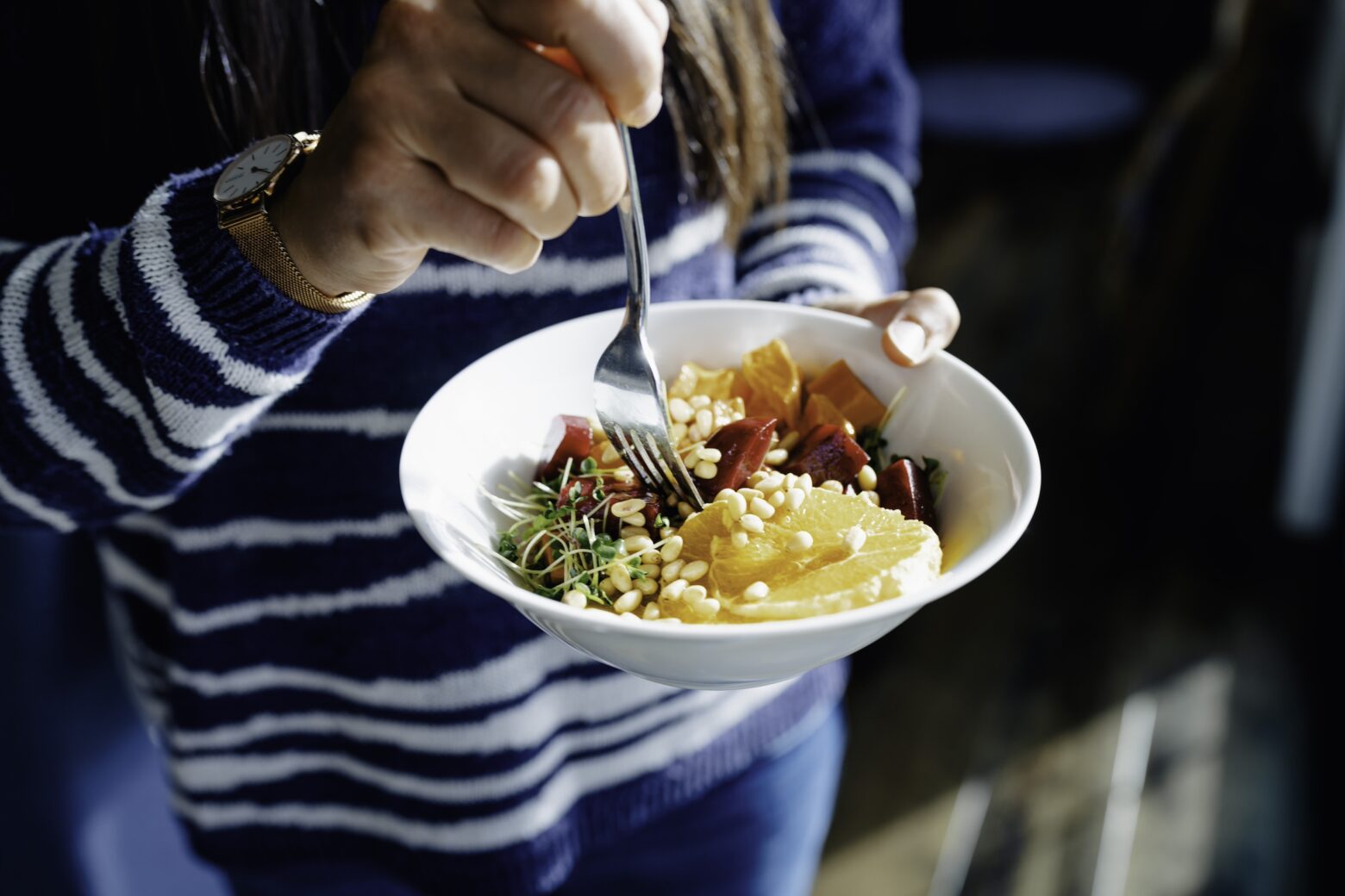 Rounding out the flavors in this salad is roasted sweet potato, a great option for gut health because it’s loaded with healthy fibers and prebiotics. [2] We also top with pickled beets, which we recommend quick pickling yourself by soaking cooked beets in vinegar as you prep the remaining ingredients. Simply drain before adding! And if beets aren’t your thing, explore our Pickled Vegetables page for more pickling inspiration.