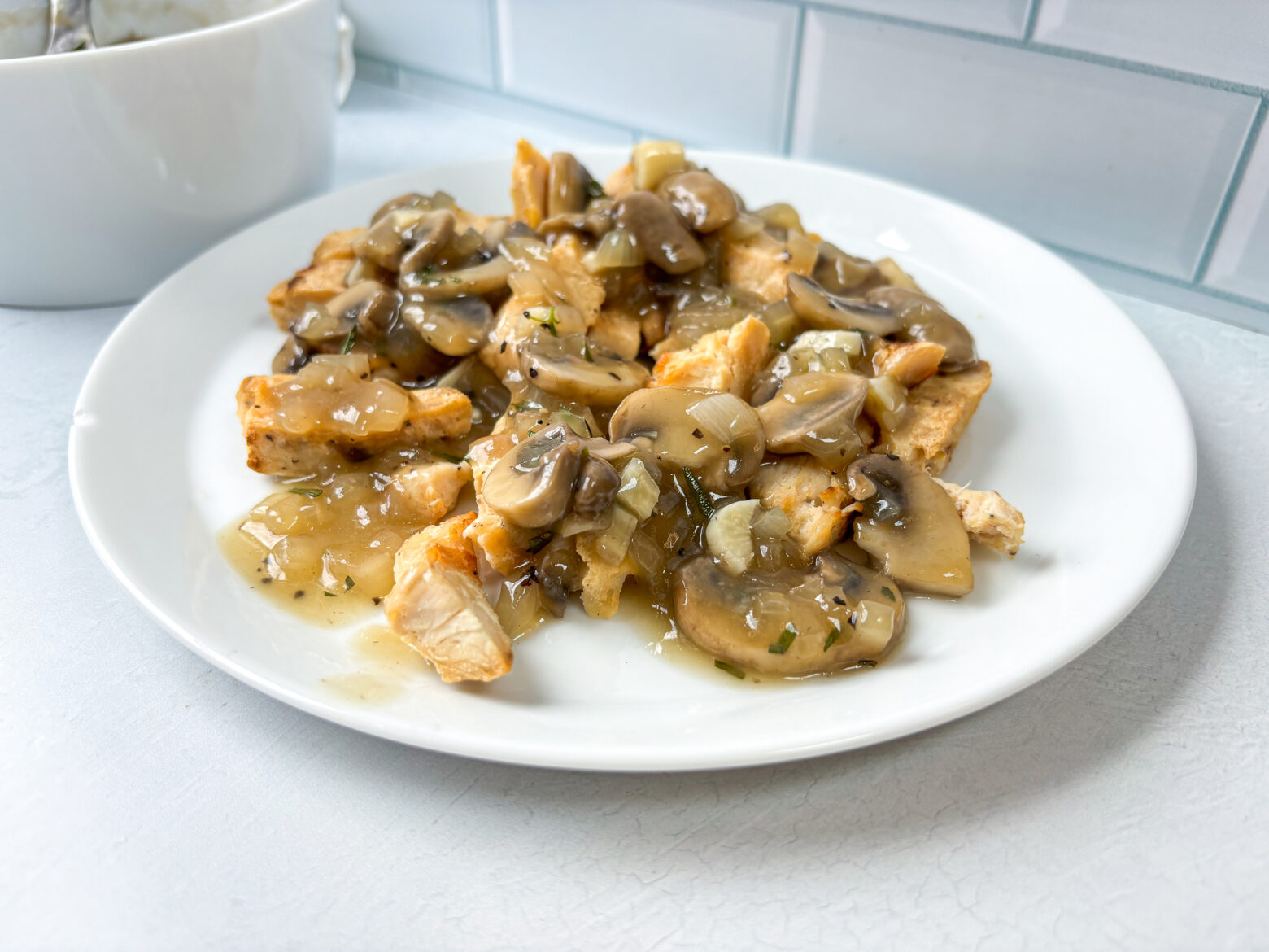 Spruce up your chicken dinner or sweet potato fries with this Mushroom Gravy recipe. It’s the perfect way to add rich flavor to a savory meal. For the base of this sauce, we used beef broth for its robust, fatty flavor, but you can use whichever broth you’d like as long as it doesn’t have added salt. Try vegetable broth made from frozen veggie scraps and serve the gravy over mashed cauliflower or use no-sodium chicken broth and enjoy the gravy atop slow-cooked pork or roasted chicken.