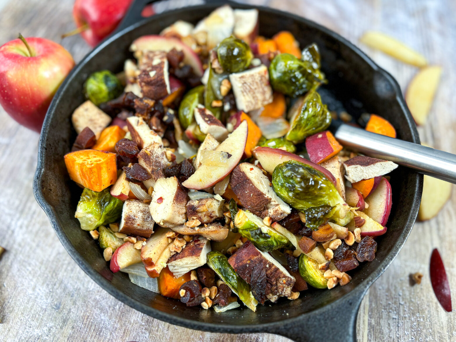 This filling fall dish needs only one skillet to make and is packed with healthy fruits, vegetables, and spices.